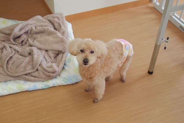マーキングをする子や、おしっこが頻回な子、毛布におしっこをしてしまう子はオムツを付けさせてもらってます。