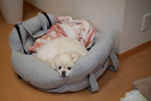 マーキングのようにおしっこを何度もして、毛布にもおしっこをする愛犬ミラも、本当ならオムツしないといけないんだけどな。