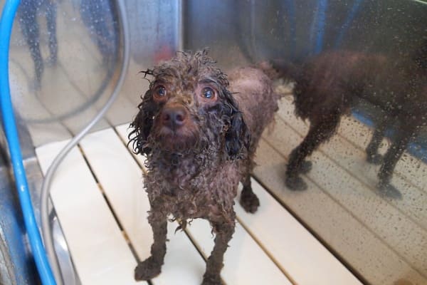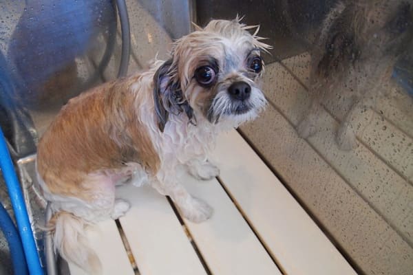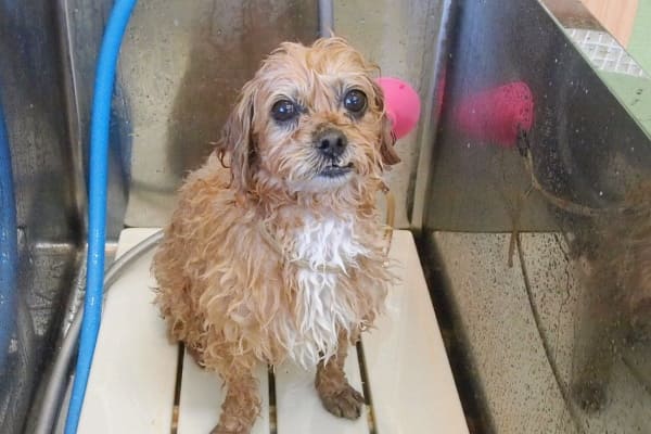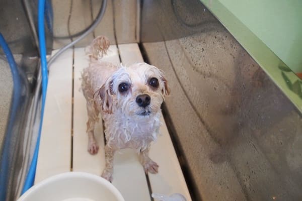 ミラは2週間も経っていないはずなのに、痒がっているので一緒に洗うことにしました。