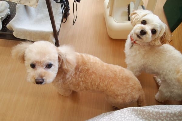 まず来てくれたのは、トイプードルのこころちゃんとあんずちゃんです。