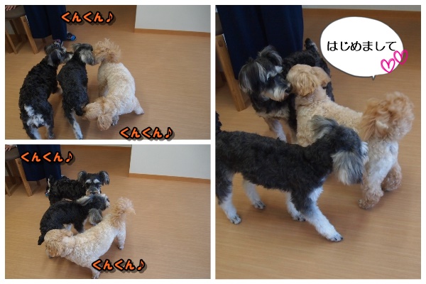 普段はこの距離で、他のわんちゃんとまったりすることは少ないです。
