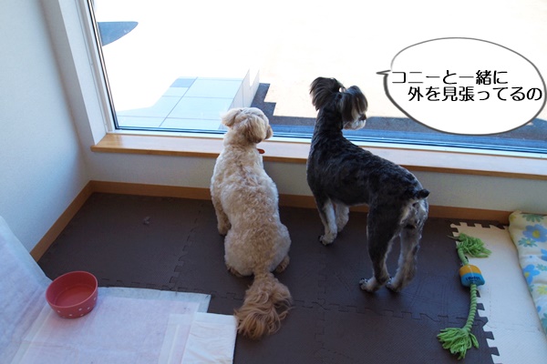 仲良くできるか自信がなかったので、しばらく家の奥にいた、看板犬コニー。