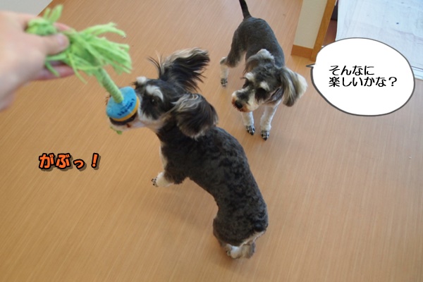 えいっ!とおもちゃを投げると、追いかけてくれるのはトロちゃんだけ。