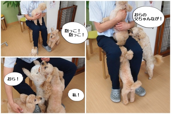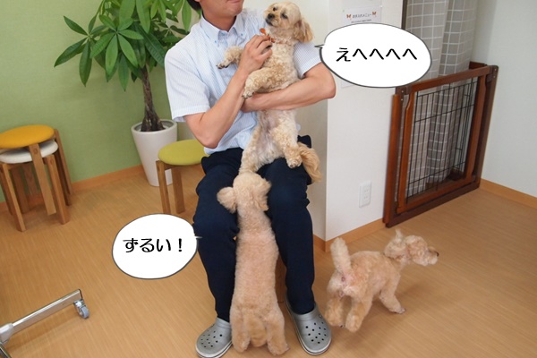 2人とも、人が大好きで、休憩中は私の膝の上を取り合いです。