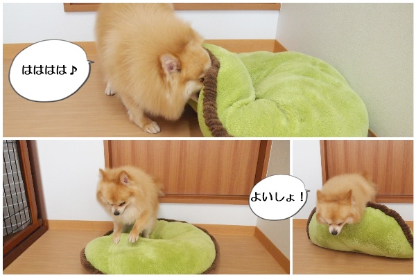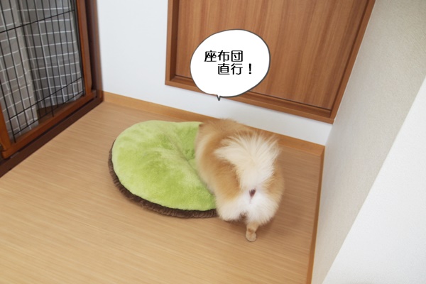 ちょっと場所を変えようと座布団を取ると、この表情。