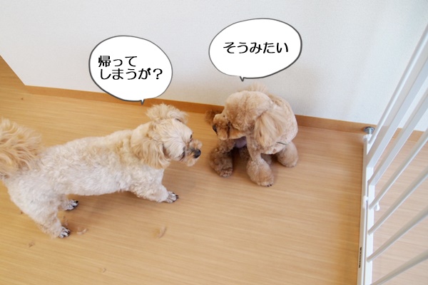 コニーは、モモちゃんが帰ってしまうのが寂しいみたいです。