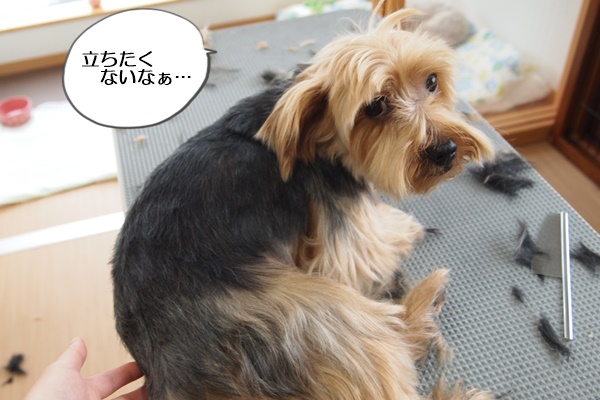 トリミングテーブルから降ろすと、またお母さんのいたイスに。