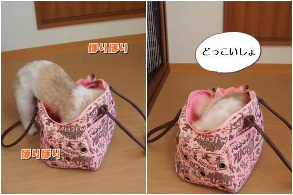 一生懸命バッグを掘ってから、どっこいしょ!と入っていました。