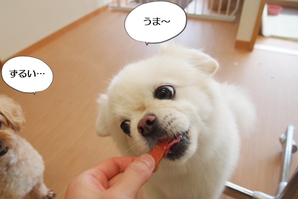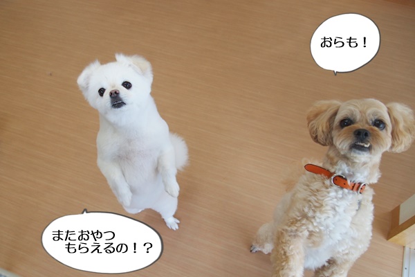 静かで大人しい2人ですが、おやつを見せると急にきときとになります。