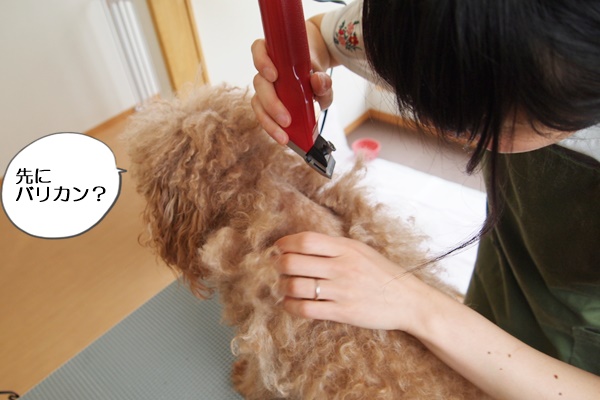 バリカンが入る余地のない所は、ブラシでほぐしたり、ハサミでカットしたり。