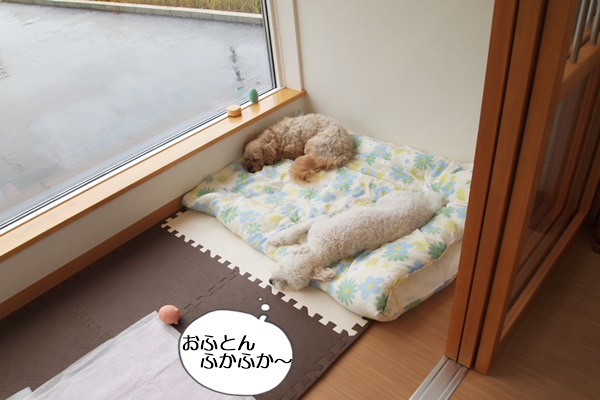 福ちゃんは他のわんちゃんの布団では絶対寝なかったのに、