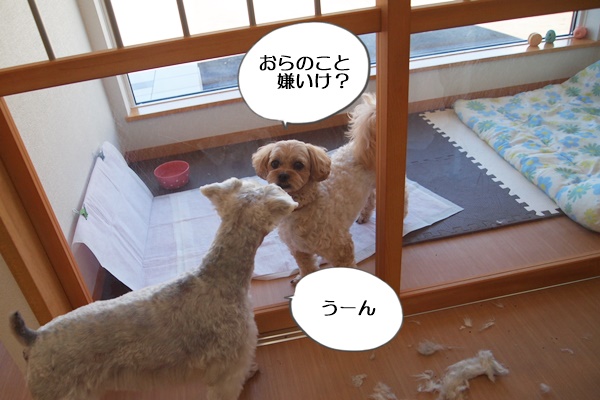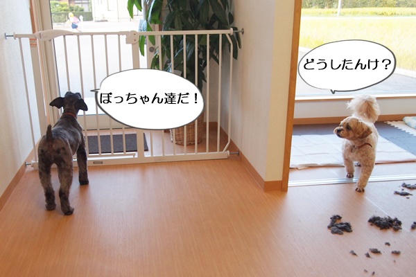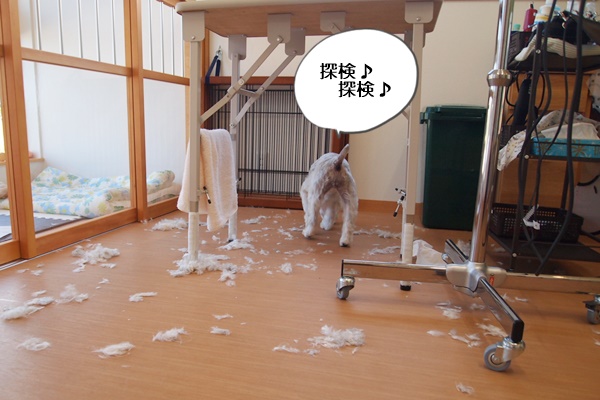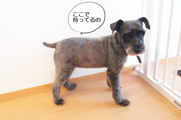 ですが、看板犬コニーも別室だと吠え続けるので、カットを始める頃に連れてきました。