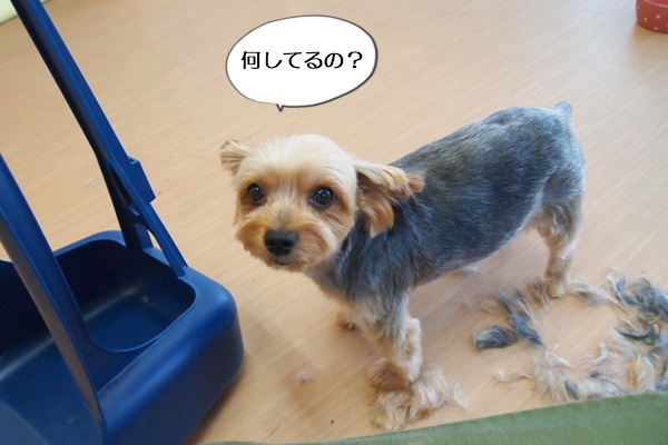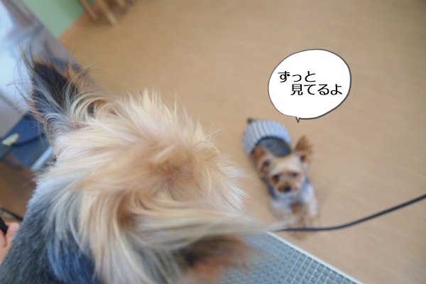 メルクルちゃんのカット中、マルモちゃんは、じっと下で凝視してました。