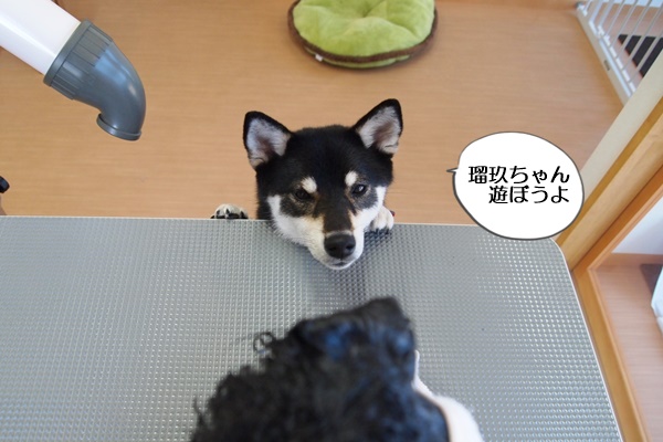 はなちゃんは、遊ぼうよ!と言っているのですが、瑠玖ちゃんは、他のわんちゃんがちょっと苦手。