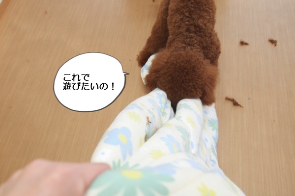 布団を片づけようとすると、遊んでいると思ったらしく、激しくつかみかかります。