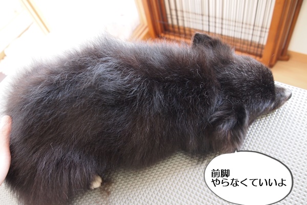 ちょこっとだけ前脚の足周りをカットしようかと思ったのですが、
