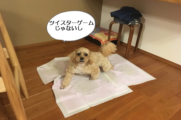 トイレシートが段々とずれて、ツイスターゲームみたいになってます(笑)。