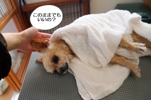 シャンプーが終わったよ、とタオルにくるむと、そのまま横になったまま起き上がりません。