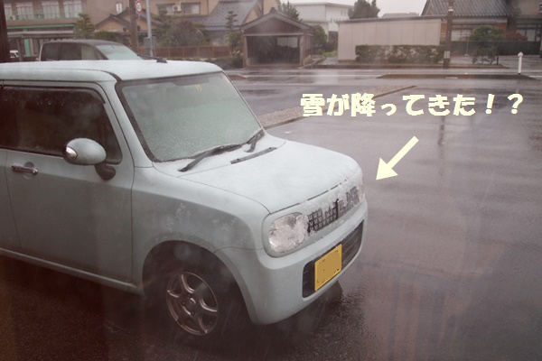 トリミング中、ふと外を見ると、車に雪が張り付いていたのでビックリ。