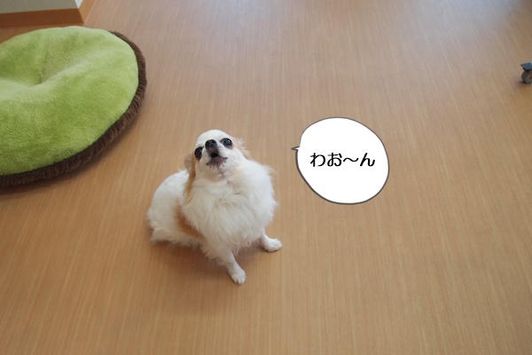 お母さんが帰ってしまって、「寂しいよ~」の「わお~ん」です。