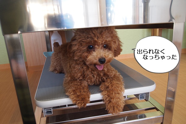 トリミングテーブルの上では、はじめ落ち着きがありませんでしたが、