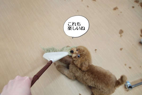 私が掃除を始めると、ココちゃんは、ほうきに夢中。