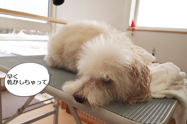 ココアちゃんは、トリミングテーブルの上でなかなかじっとしてくれません(汗)。