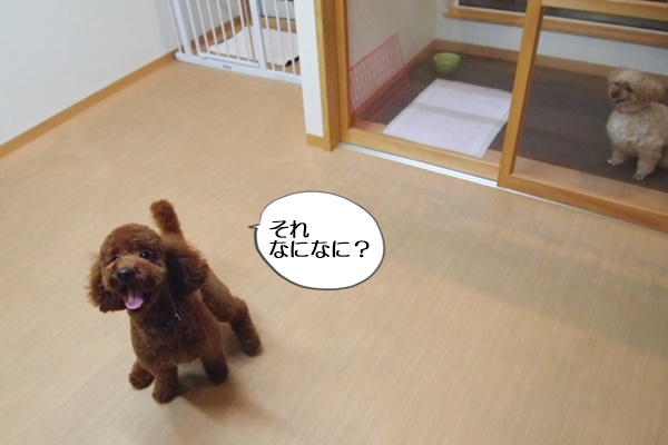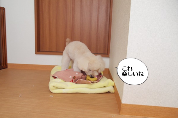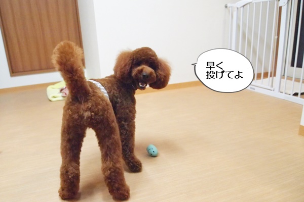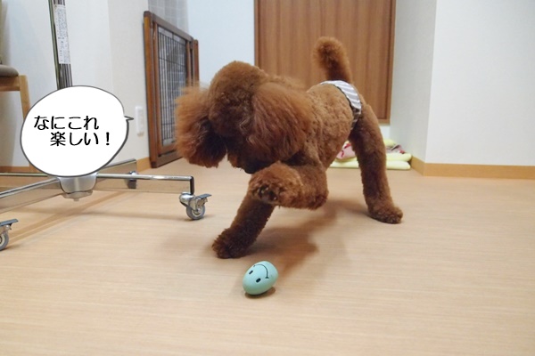 本当は、違うおもちゃで遊んでいたのですが、意地悪な看板犬コニーに横取りされ、仕方なく別のおもちゃに。