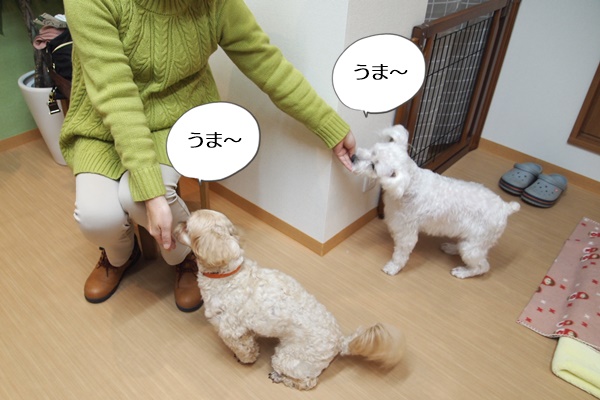 あいちゃんのお母さんに、前よりもずっとお利口になっている、と褒めていただきました。