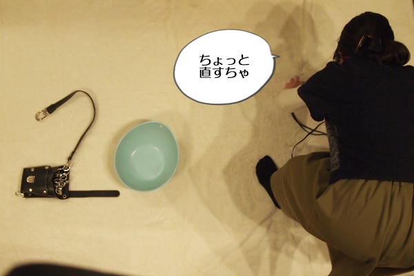 ブロー中、テーブルの上でぐるぐる回る獅子丸ちゃん。