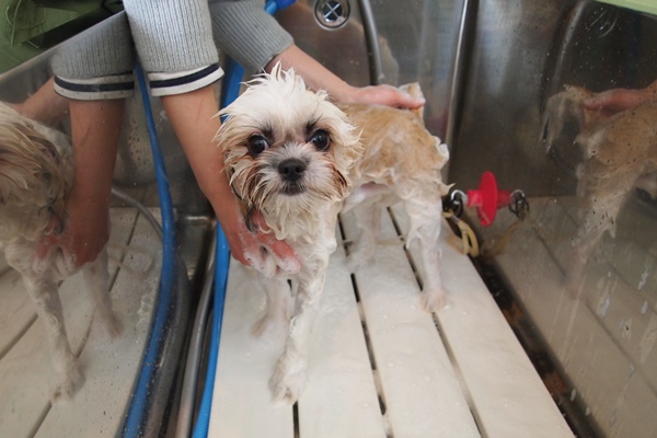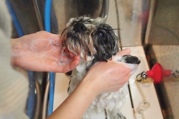 シャンプーは、体からお耳までは大丈夫なのですが、お顔が濡れるのが苦手なようです。