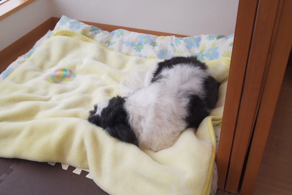 数回休憩を挟んだのですが、そのたびに毛布の所に行って、くつろぐぴーちゃん。