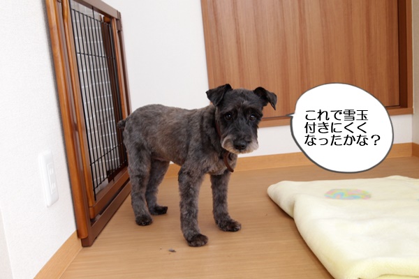 お散歩のときに雪玉をたくさん付けてしまうという、ハルちゃん。