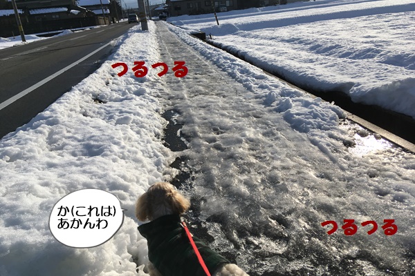 別の所に凍っていない道があったので、無事お散歩に行くことができましたよ。