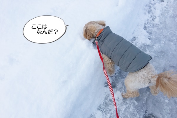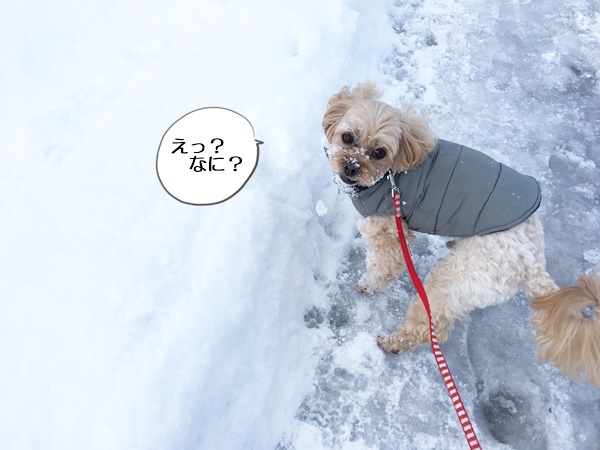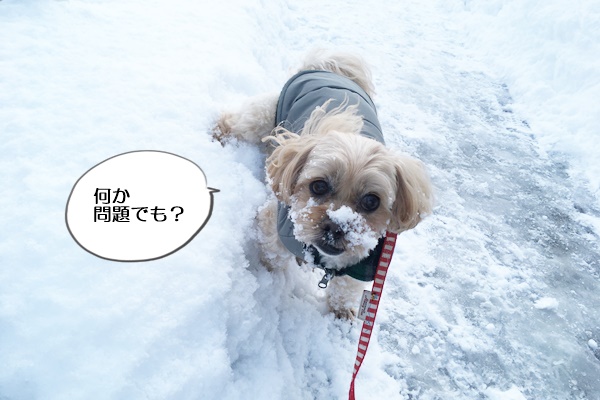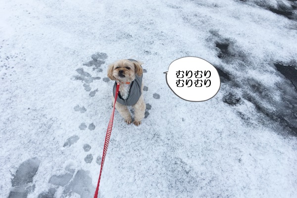 あんこちゃん、お散歩の時に足に雪玉が付いてしまうとのことだったので、