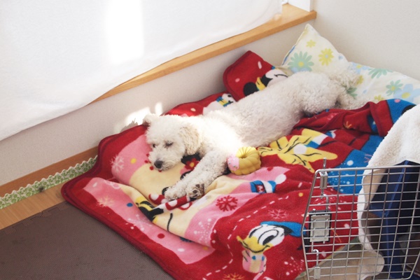 お散歩に行こうと愛犬コニーを誘うのですが、どうしても寒いようで、行きたがりません。
