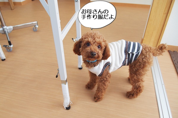 ポコちゃん、可愛いお洋服を着ていると思ったら、なんとお母さんの手作りだそうです。