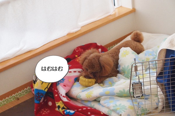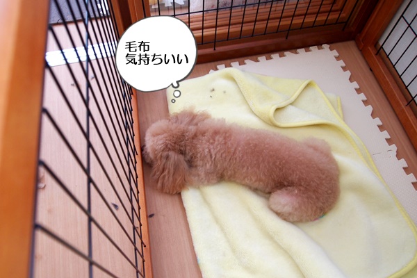 さすがに床の上では寒そうなので、今日はお部屋の中に入って、毛布の上に座ってもらいました。
