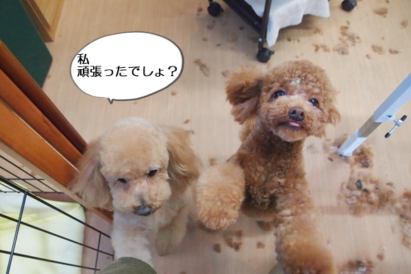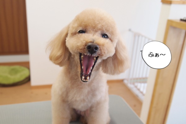 お顔のカットが苦手なのんちゃんですが、いつもは、お顔のカットになると眠たくなってくれます。