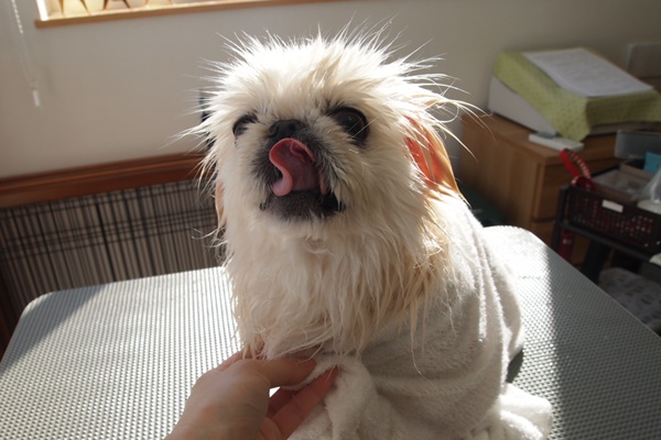いつもすぐに座りたがって、カットに苦戦するまるちゃんですが、