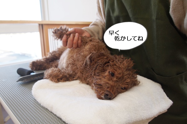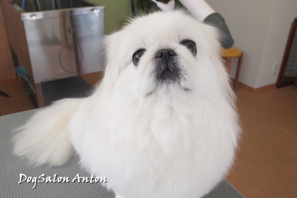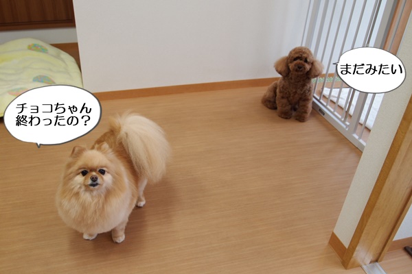 チョコちゃんのカットの途中で、モコちゃんのお迎えです。