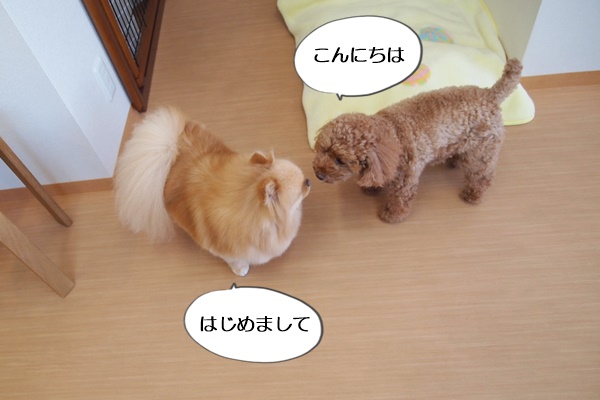 チョコちゃんは、他のわんちゃんが苦手かと思っていましたが、モコちゃんに興味を示していました。
