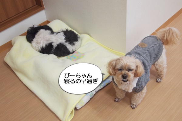 ぴーちゃん、今は寝る時間じゃないよ~。