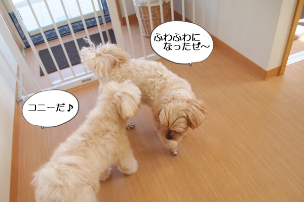 嬉しそうにコニーに近づき、コニーのニオイを嗅ごうと追いかけていました。