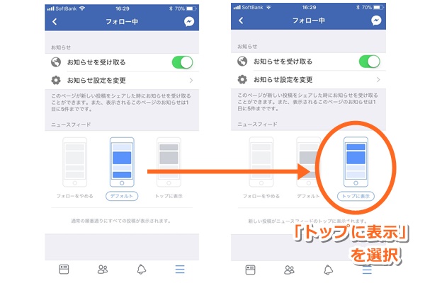 1つのやり方として、フォロー中のページをトップに表示する方法があるようです。