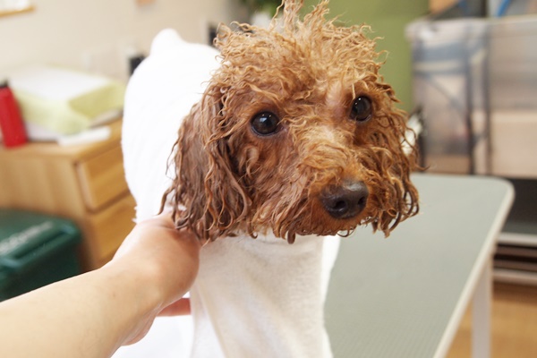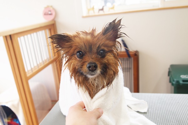 床の上では元気いっぱいなのですが、シャンプーはとてもお利口さんでした。