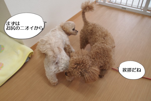 わんちゃん同士の挨拶は、お尻のニオイを嗅ぎ合うこと。