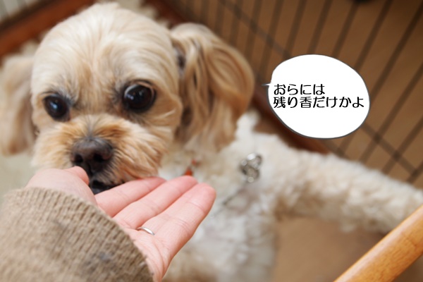 ウィンちゃんのおやつを勝手にあげてはダメだと思って、コニーには残り香だけ(笑)。