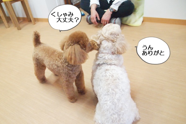ウィンちゃんは、ももちゃんのことが気に入り過ぎて、トリミングテーブルに手を掛けてこちらを見守っていました。