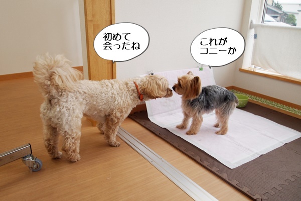 他のわんちゃんが苦手だと聞いていたので、今までコニーに会わせていませんでした。